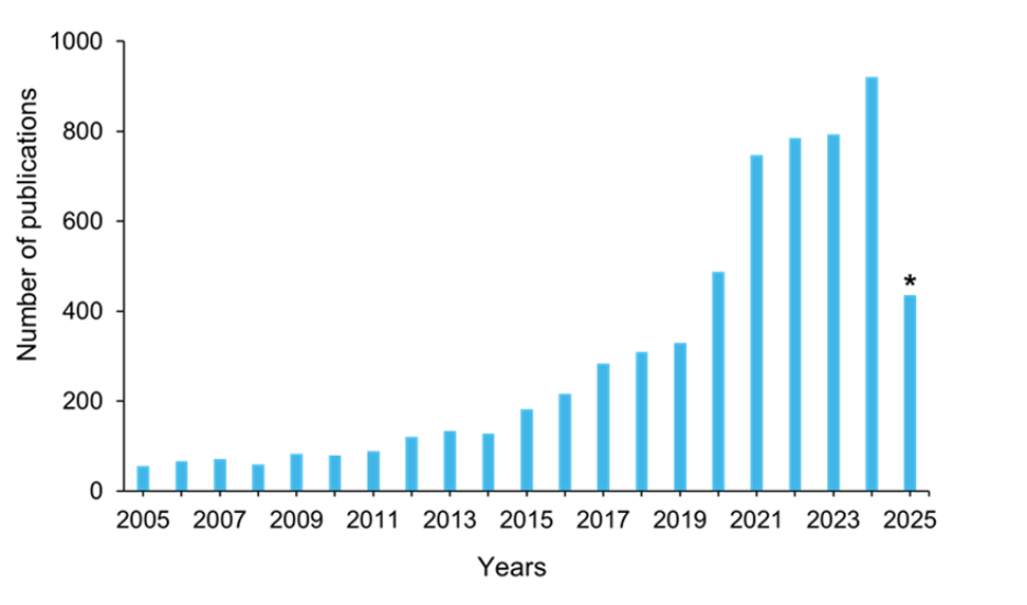 Figure 4: Publication trends on antimicrobial resistance in animals. Source: CAS Content Collection. Data from 2005-2025. *Data for 2025 is partial through July.
